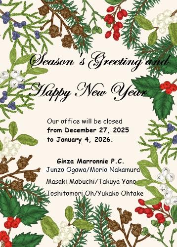 本年も多くの皆様にお力添えを頂き、誠にありがとうございました。日頃より賜っておりますご信頼とご厚情に、所員一同、心より感謝申し上げます。
